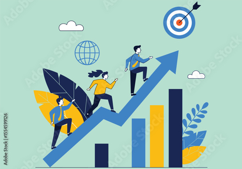 Businessman in a suit with a business graph illustrating finance growth and success concept