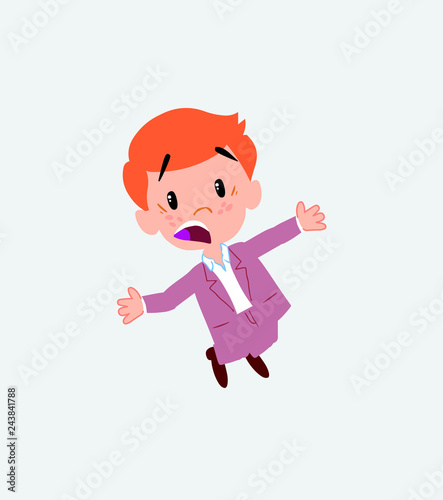 Businessman in casual style jumping terrified.