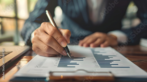 Businessman in focus analyzing diagnostic data using graph. October 20 is World Statistics Day. Concept of successful business management