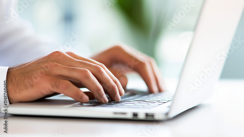 Businessman in Formal Attire Using Laptop in Corporate Office