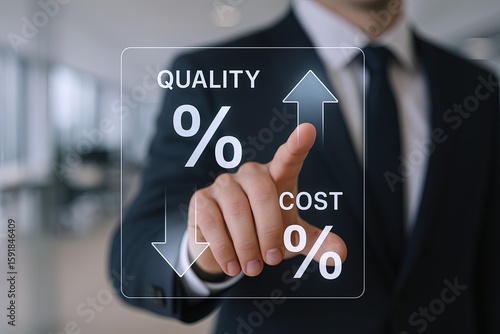 Businessman in Formal Suit Interacting with Digital Investment and Cost Analysis Screen.