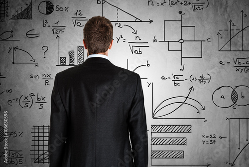 Businessman in front of math formulas