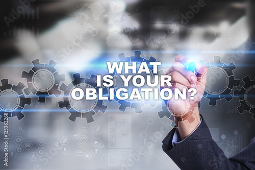 Businessman is drawing on virtual screen. what is your obligation concept.