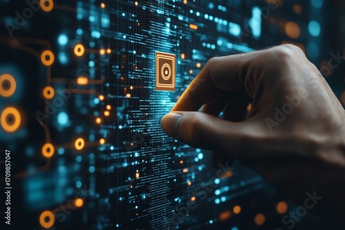 Businessman pressing approved stamp icon on touchscreen interface symbolizing digital document verification and project confirmation