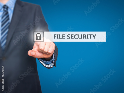Businessman pressing File Security button on virtual screen