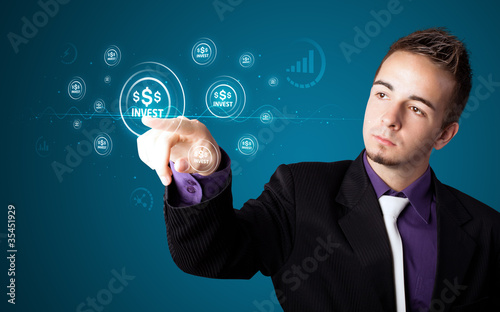 Businessman pressing modern business type of buttons