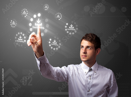 Businessman pressing simple type of start buttons