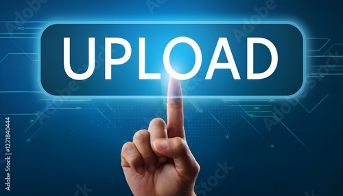 Businessman pushing web button download , Hand pressing Upload button on interface with blue background download, software, computer, business, icon