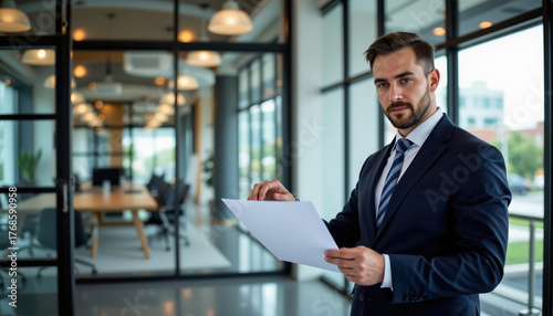 Businessman Reviewing Marketing Strategy Plan Modern Office Performance Diagram Multiracial Insights Professional Environment