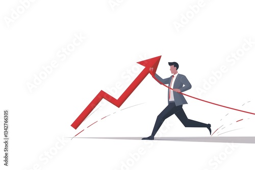 Businessman Running with Red Arrow: Business Growth and Success Illustration