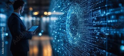 Businessman Securing Data with Encryption for Cybersecurity in Online Business Transactions