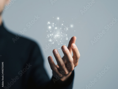 Businessman showing virtual interactive. Digital floating diagrams in businessman’s hand