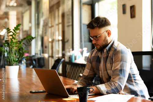 Businessman sitting looking at his laptop. Businessman working in the office on his laptop.