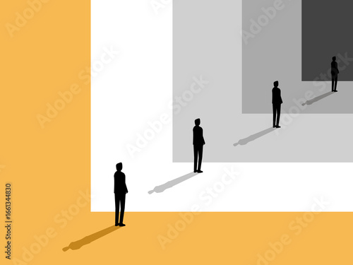 Businessman standing looking at his reflection in the mirror