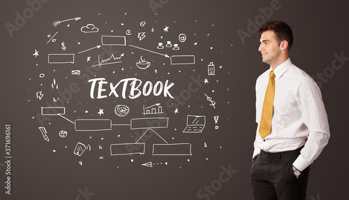 Businessman thinking with TEXTBOOK inscription, business education concept