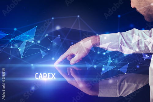 Businessman touching huge screen with CAPEX inscription, modern technology business concept