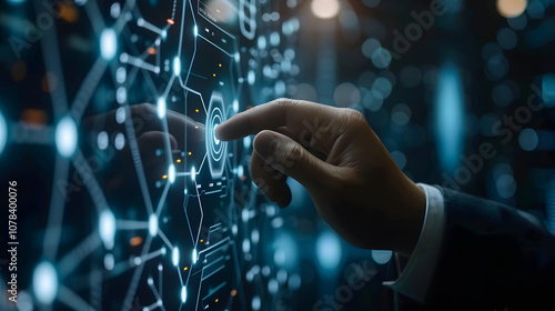 Businessman touching the AI Artificial Intelligence , Technology AI for working tools, Ideas an the adoption of technology in business in the digital age