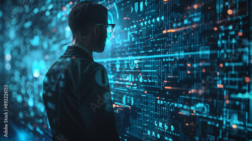 Businessman using AI technology for cybersecurity enhances threat detection and response capabilities