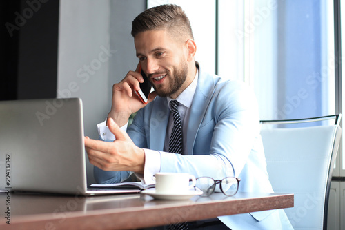 Businessman using his mobile phone in the office.