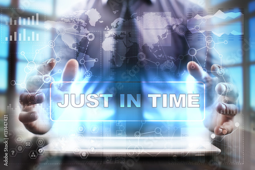 Businessman using tablet pc and selecting just in time.
