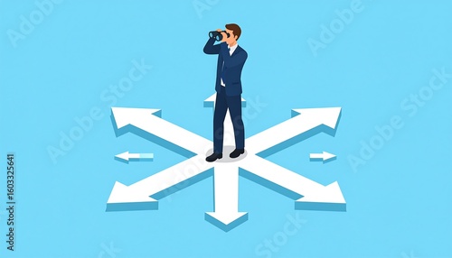 Businessman views multiple directions