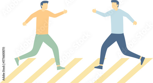 Businessman walking crosswalk. Man in suit going to office crossing street. Business vector concept. Illustration of businessman going crosswalk