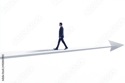 Businessman walking on an arrow, symbolizing progress and career advancement