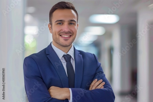 businessman with an inviting smile, projecting professionalism modern bright office background
