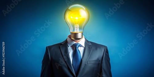 Businessman with Lightbulb Head, Digital Art, Portrait, Blue Background, Lightbulb Head, Business, Idea