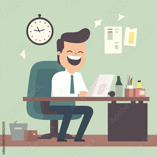 Businessman working at the office. Vector illustration in flat style. Generate AI.