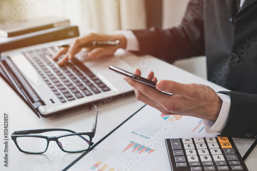 Businessman working on Desk office with marketing graph statistics analysis