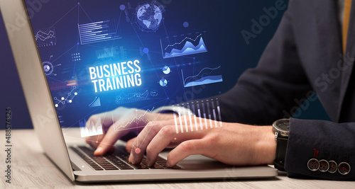 Businessman working on laptop, business concept