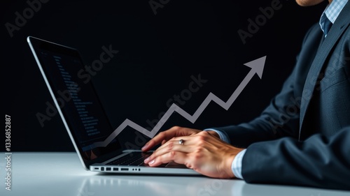 Businessman Working on Laptop with Graph Reflecting Growth Trend