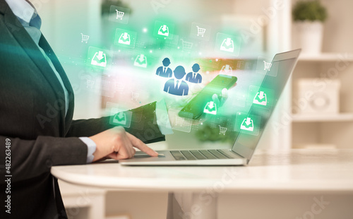 Businessman working on laptop with new business