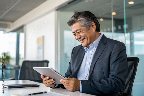 businessman working on tablet computer
