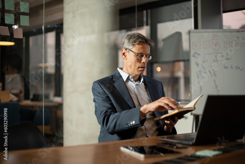 Businessman working with laptop at office. Businessman sitting at office desk working on laptop computer..