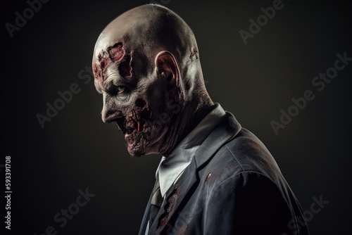 Businessman zombie. Zombie in suit. Generative AI.