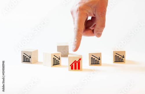 Businessman's hand chooses a plan for business growth. Startup growth and promotion concept