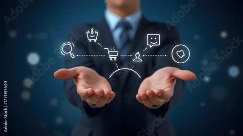 Businessman's hand is pressing a digital social network icon on a virtual screen, representing global communication and future business success