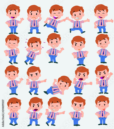 BusinessmCartoon character businessman in casual style. Set with different postures, attitudes and poses, doing different activities in isolated vector illustrations.an in casual style waving, happy.
