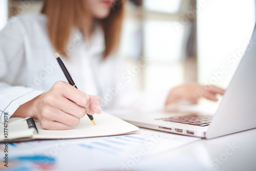 Businessmen analyze and record information about the financial business