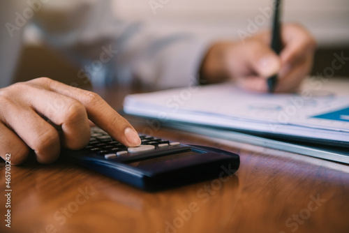Businessmen are calculating income-expenditure and analyzing real estate investment data at office, Accounting Financial and tax systems concept.