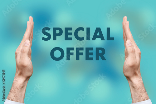 Businessmen from both hands " SPECIAL OFFER " writes