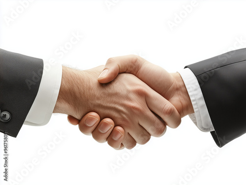 Businessmen Handshake on White Background with Copy Space for Text. Professional and Polished Business Interaction.