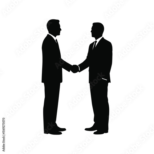 Businessmen shaking hands black silhouette partnership deal agreement success collaboration vector illustration