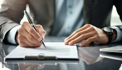 Businessmen Signing an Agreement on a Business Deal - Business People Agreeing on a Contract for a Job Offer - Buyer Signs Letter for Real Estate, Mortage, House, Property or Insurance