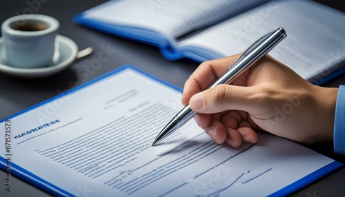 Businessmen Signing an Agreement on a Business Deal - Business People Agreeing on a Contract for a Job Offer - Buyer Signs Letter for Real Estate, Mortage, House, Property or Insurance