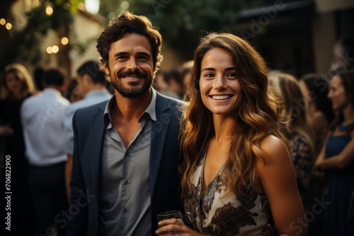 Businesspeople at an outdoor networking event, savoring drinks and contributing to a productive and collaborative atmosphere, Generative AI