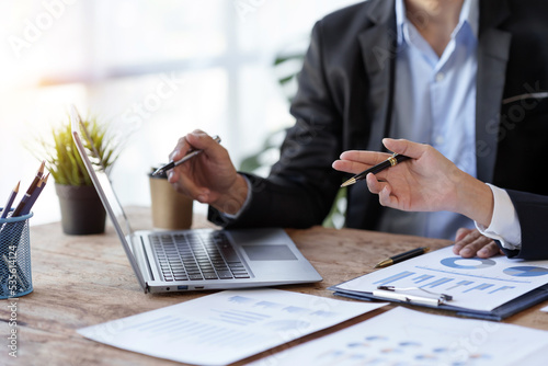 Businesspeople meeting for ideas, analyzing marketing investments, present and plan new result for future project in the office.