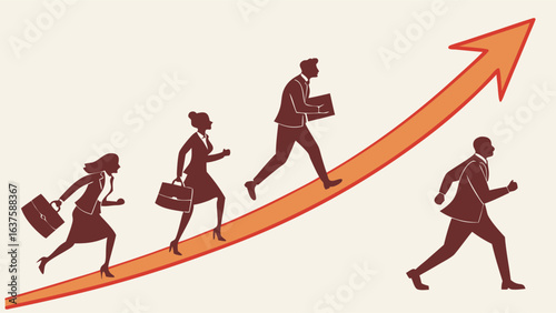 Businesspeople Running Upward Trending Arrow Growth Concept.